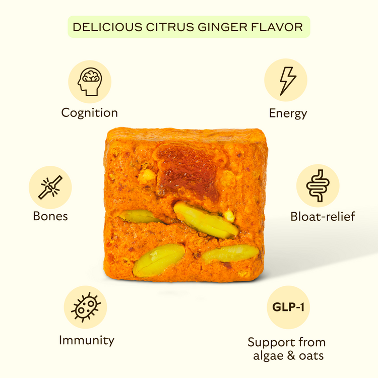 The GEM Bite delivers 20+ whole-food vitamins, minerals, probiotics, and prebiotics for foundational health in one delicious Bite.