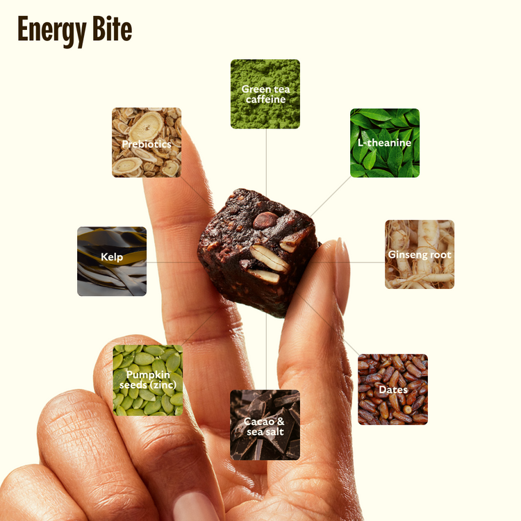 Our Nutrient Support Bites provide targeted energy, relaxation, and sleep support powered by powerful superfoods, herbs, adaptogens, and more.