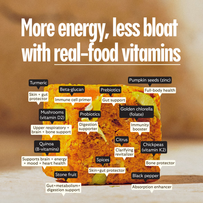 - Pumpkin seeds and prebiotics enhance gut health and immune support.