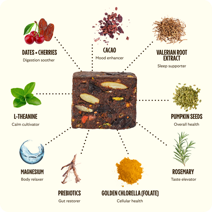 - Pumpkin seeds + cacao provides plant-based protein and recovery-supporting minerals.