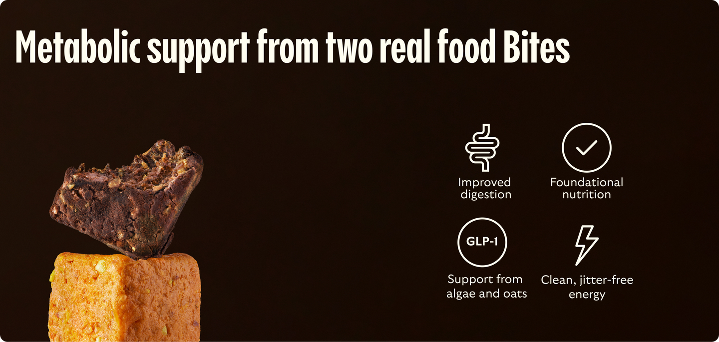 Each Daily Bite delivers biotin, prebiotics, probiotics, and science-backed nutrients like beta-glucan (a natural GLP-1 activator) to support digestion, metabolism, energy, hair, skin & nails, brain function, bone health, and immunity.