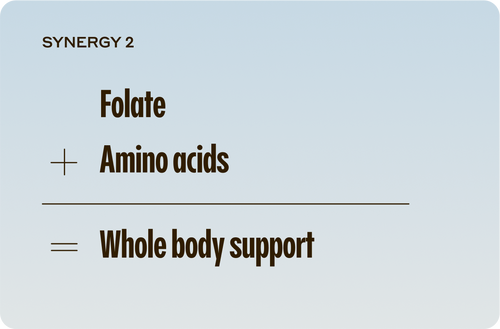 Golden chlorella contains B vitamins including folate (vitamin B9), which supports cellular division and DNA replication. Leafy greens and beef liver are high in folic acid, but not always high in our diet, so we use this sustainable microalgae for extra support.