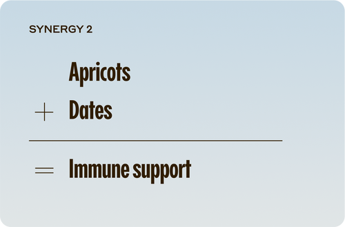 We believe in a food-first approach and use dried fruits like dates and apricots that are chock full of magnesium, vitamin A, and dietary fiber. These nutrients can help support healthy immune function, digestion, and metabolism.